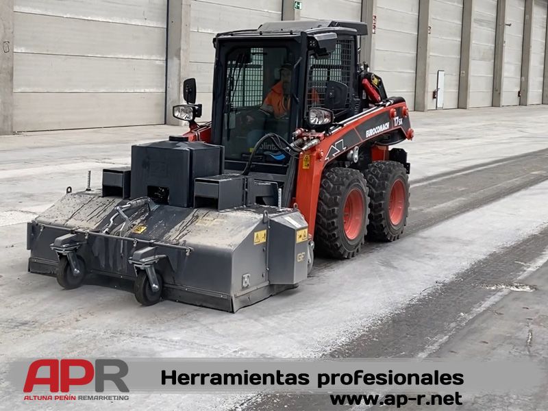 Este tipo de solución es perfecta para empresas cuyas instalaciones se componen de nave de almacenamiento o fabricación y patio o campa (empresas de materiales de construcción, logísticas, fábricas, etc), especialmente útil cuando se dispone de carretilla elevadora. La barredora industrial supone aproximadamente un 50% de ahorro en la inversión como solución respecto a barredoras autopropulsadas, además de tener unos costes operativos significativamente más bajos. Además, el trabajo de limpieza puede realizarse de forma rápida, con anchos de barrido que van desde 1,20 hasta 2,40 metros.