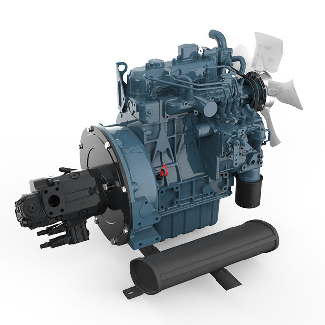 El motor KUBOTA desarrolla una potencia de 20,9 Cv. El motor, además de encontrarse en la ubicación ideal para el mantenimiento, cumple con las normativas europeas anticontaminación Euro V y permite a la máquina trabajar a un elevado nivel.