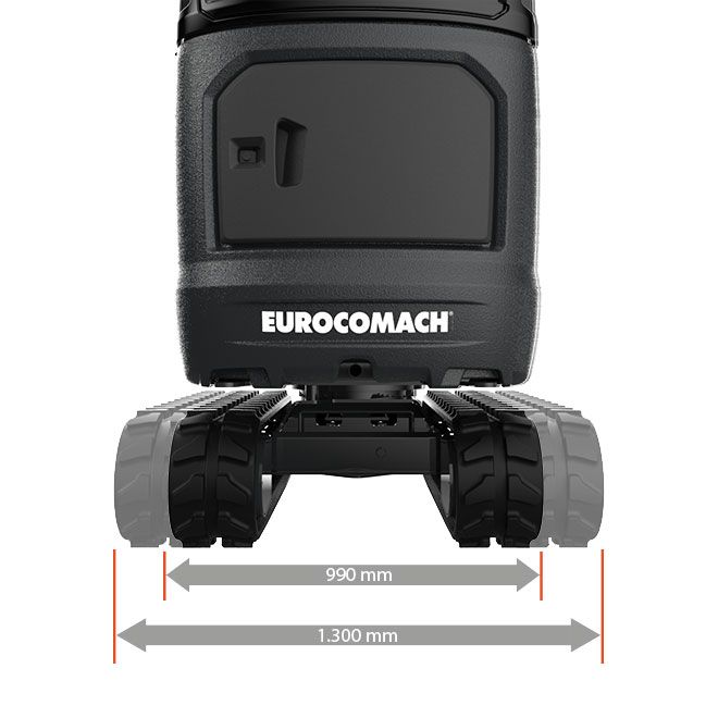 El chasis extensible (de 990 mm 1.300 mm) hace que la 22SR sea una máquina muy compacta.